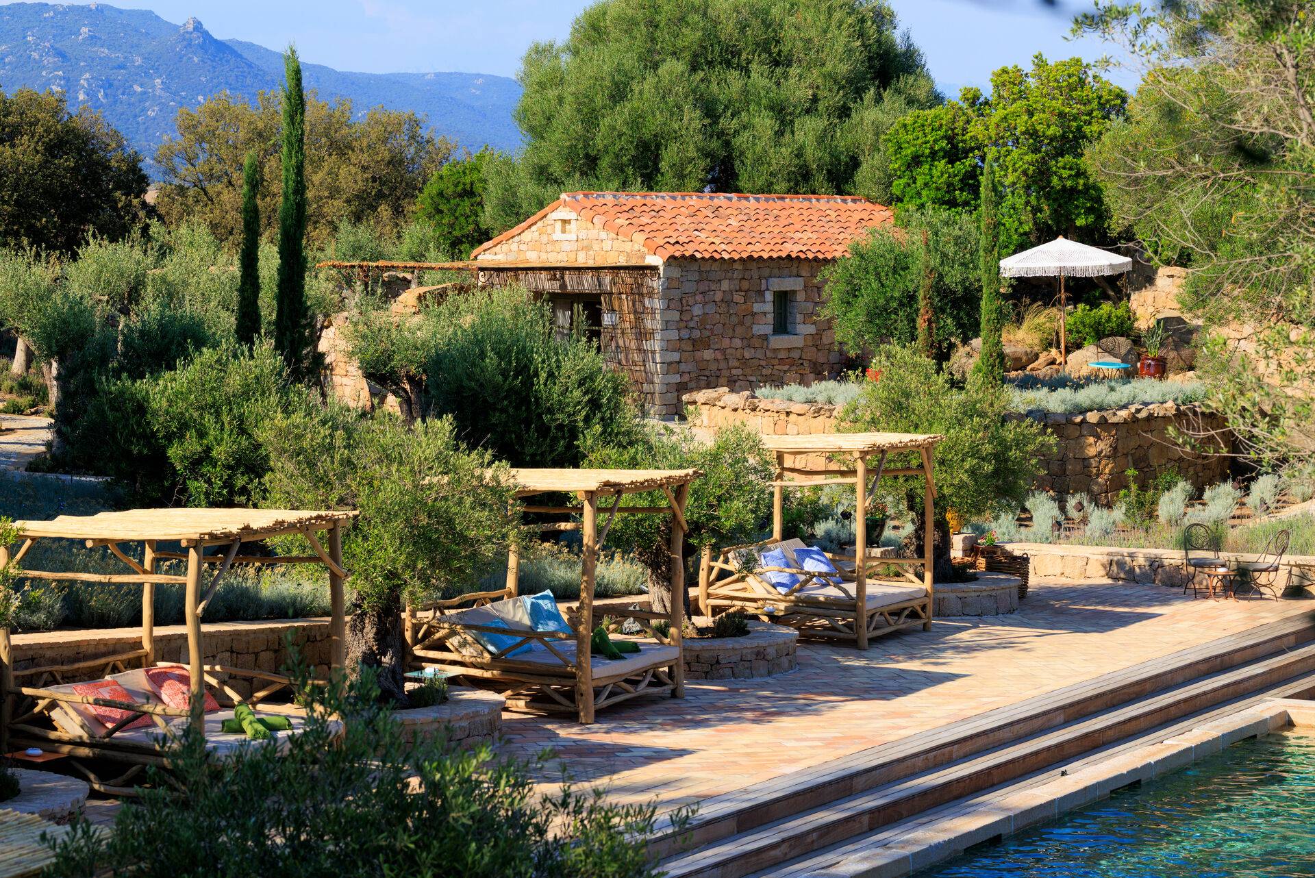 Autour du hameau, un jardin foisonnant d’agrumes, d’oliviers et de plantes endémiques sublime l’esprit méditerranéen. Les hôtes ont accès aux différents services du Domaine de Murtoli, ainsi qu’à l’une de ses plages, pour prolonger la découverte de ce territoire unique.