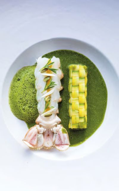 De Benoit Rinaldi en Castagniccia, truffe d"été, asperges sauvages, écrasé de pommes de terre & jus corsé au romarin